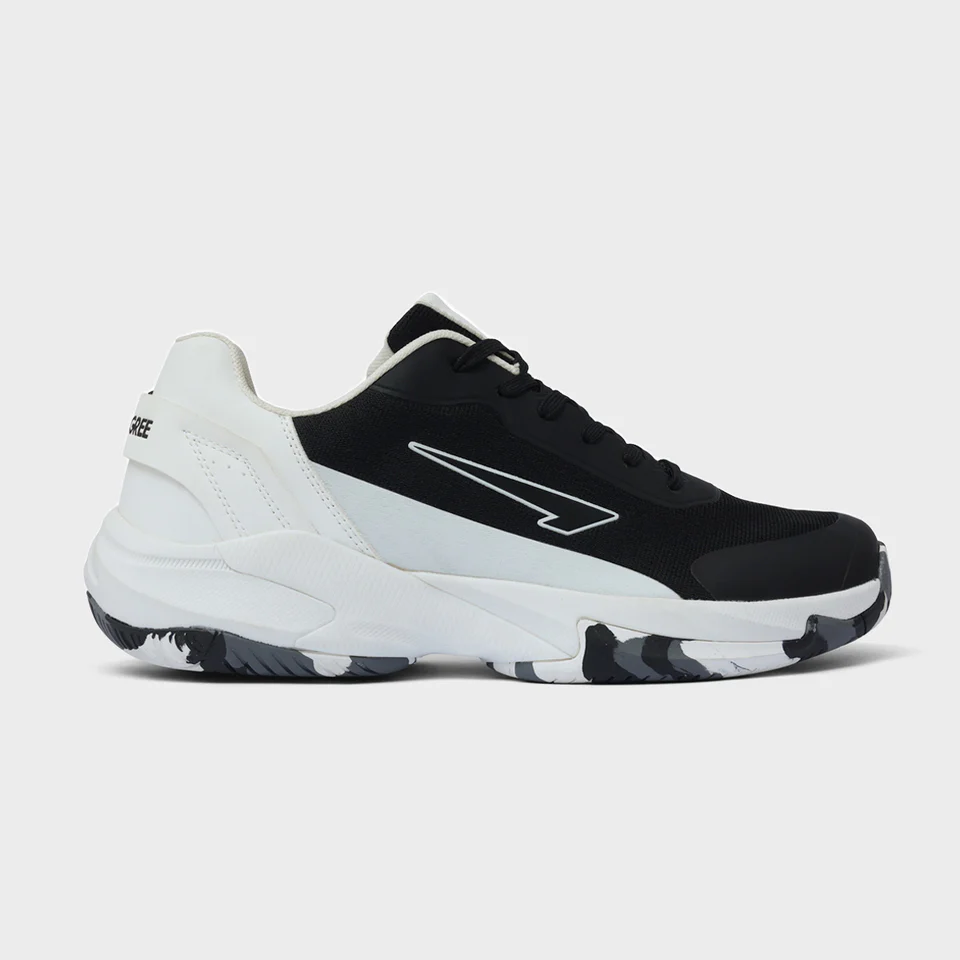 Precision XT Black padel shoe sleek black aur white design ke saath aapko superior grip, stability, aur comfort deta hai. Har match ke liye perfect choice jo aapki agility aur performance ko enhance karta hai.